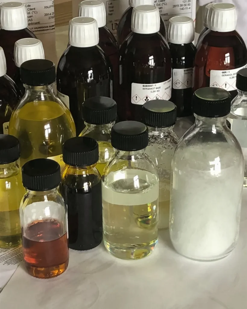 All of our scents begin in our studio, where we develop each formula by hand using raw materials sourced from Grasse, France — a region celebrated for its long-standing perfumery tradition. We work with perfumery-grade aroma chemicals, a mix of natural and synthetic oils, chosen for their reliability, refinement, and ability to create beautifully layered fragrances.